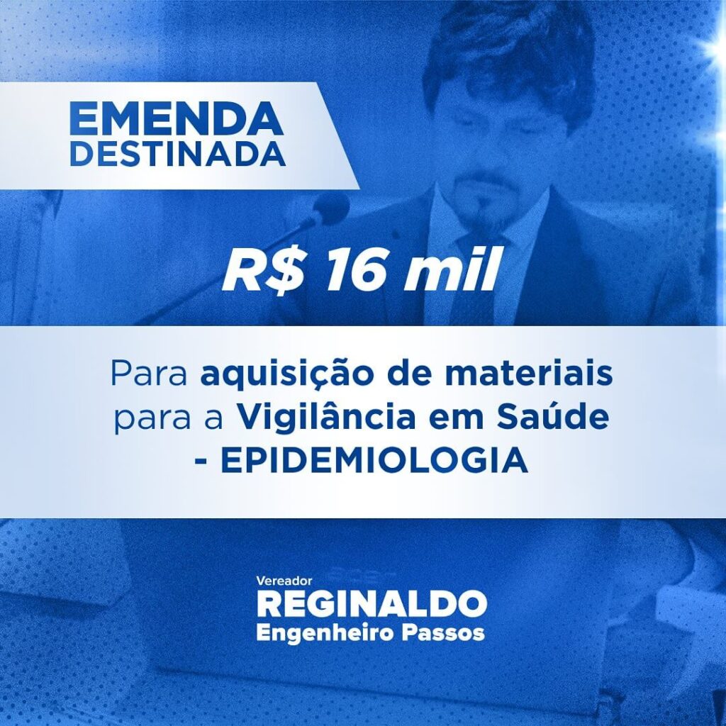 - Destinei, através de emenda impositiva, dezesseis mil reais para a equipe de epidemiologia do nosso município. O valor é para a aquisição de equipamentos e materiais necessários para melhoria nas atividades do setor.