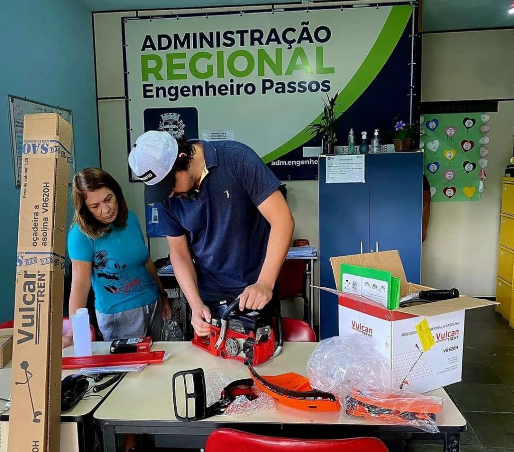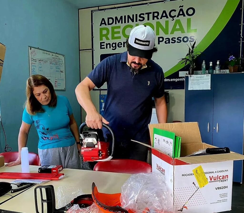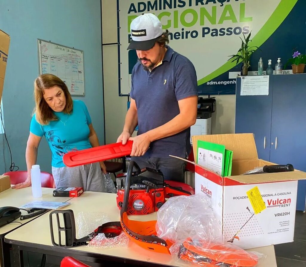 Foram R$ 30.000,00 para a compra de motosserras, motopodas e roçadeiras, sendo uma parte enviados para Administração Regional de Engenheiro Passos.