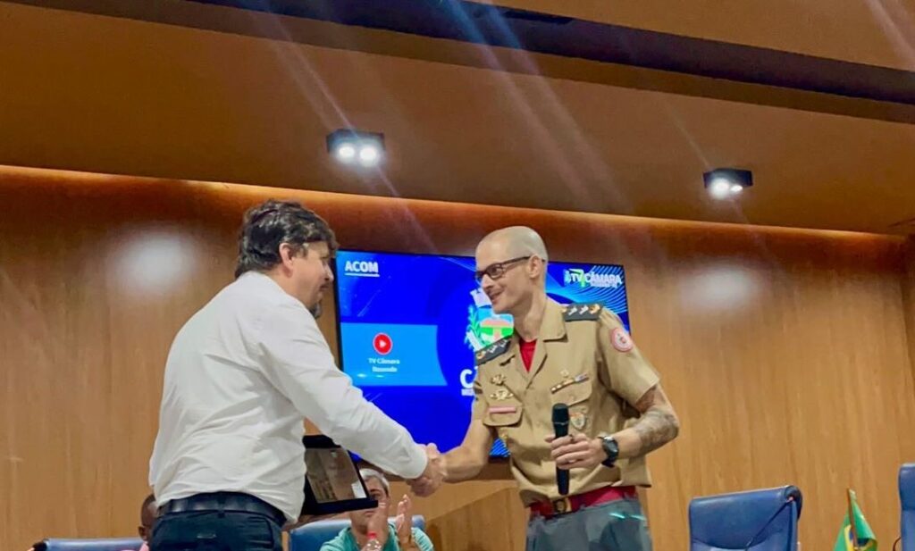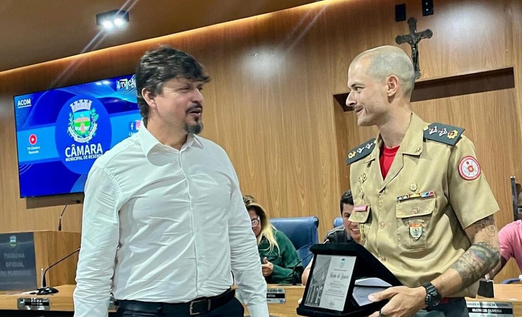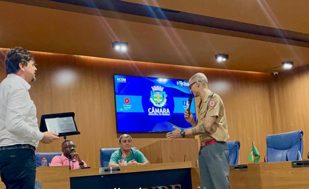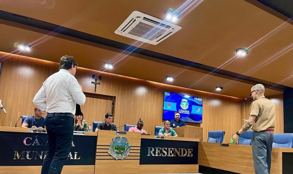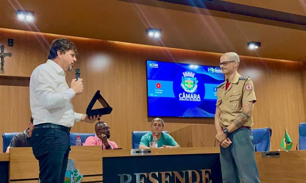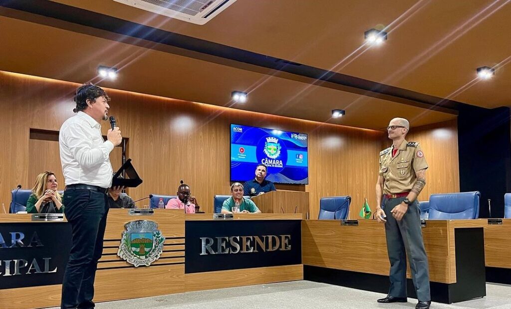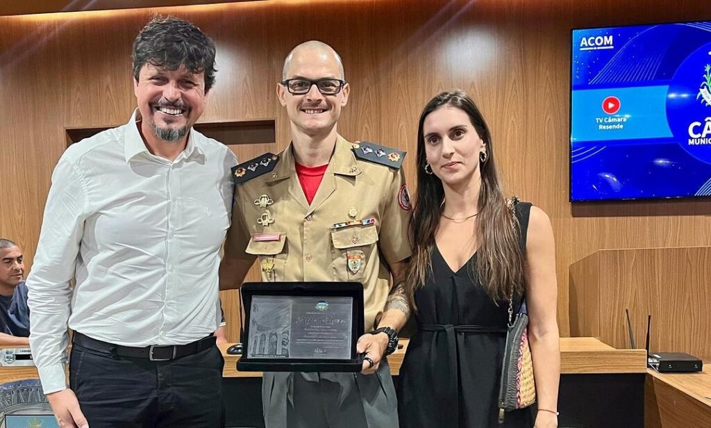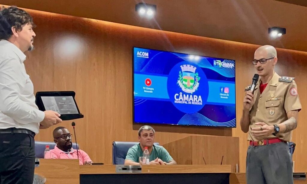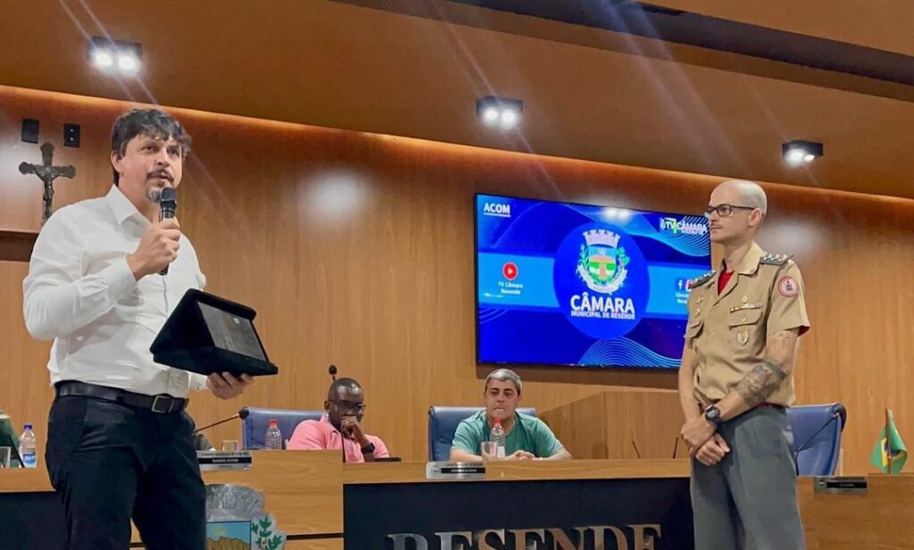 • Agraciando esse bombeiro tão especial e importante para a população resendense – Anndrio Couto que, em janeiro de 2023, fez o resgate e salvamento de uma mulher que atentou contra sua própria vida.