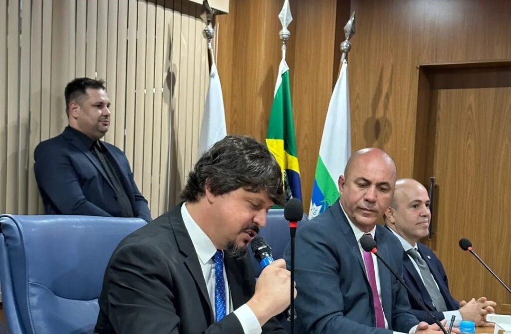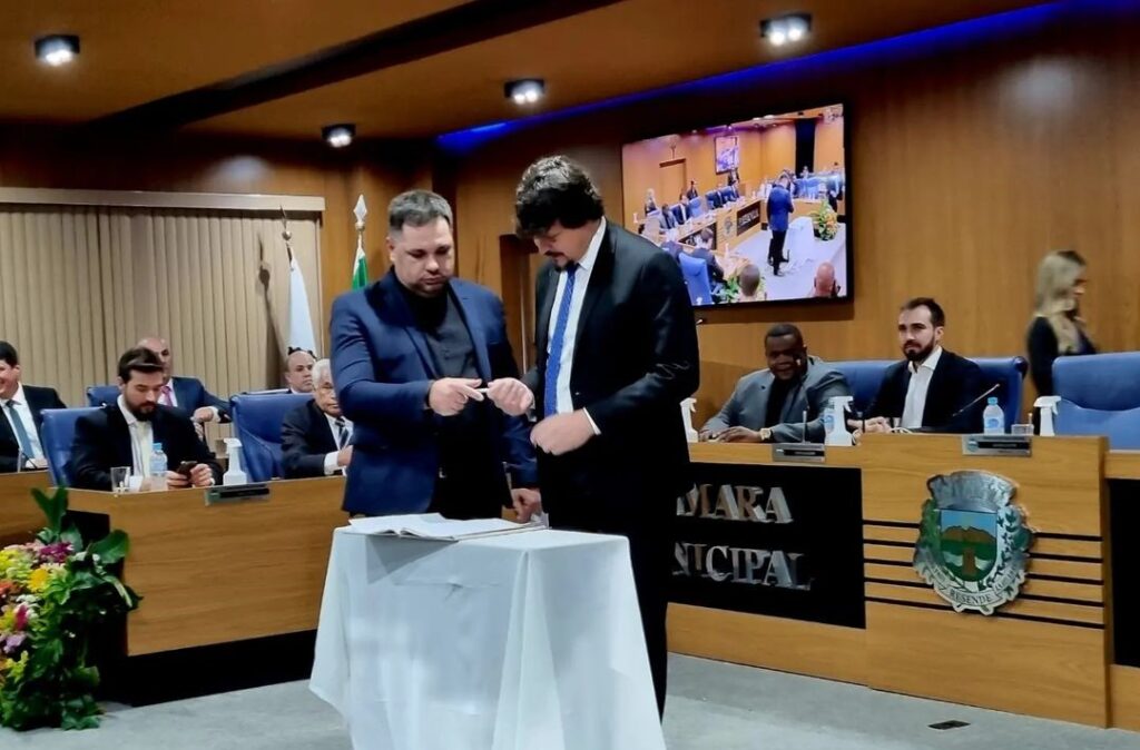 - E no último dia 2 de janeiro deste novo ano, foi a sessão solene de posse da mesa diretora Biênio 2023/2024 da Câmara Municipal. Agora é a vez do meu nobre amigo e vereador Sandro Ritton presidir a Casa do Povo. Que honra a minha passar para meu grande amigo e irmão essa nobre missão.