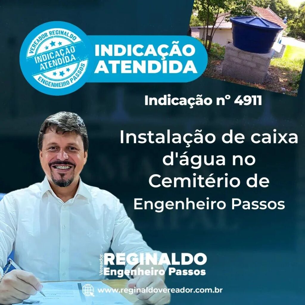 - E finalmente, foi instalada a caixa d’água do nosso cemitério. São pequenos detalhes que fazem toda diferença! Mais um problema sanado! Mais uma INDICAÇÃO ATENDIDA! Agora não teremos mais falta de água no cemitério, principalmente em dias de velório.