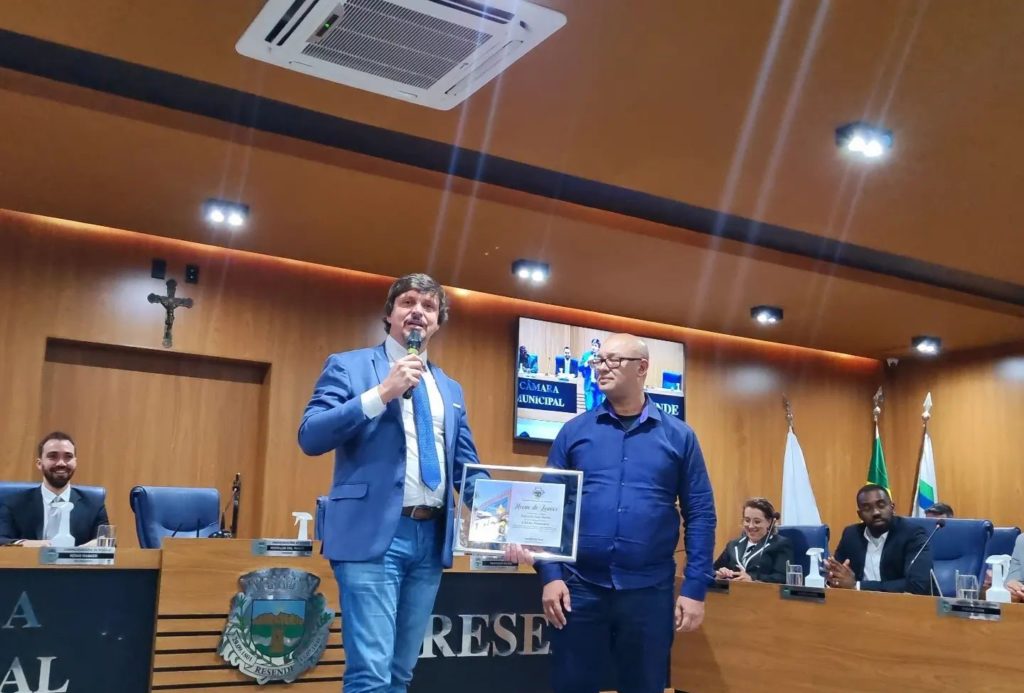 • Em mais uma Sessão Solene de entrega de Moção de Louvor, tive a alegria de agraciar e agradecer esse nobre amigo, Clécio. Com um histórico lindo de ajudar as pessoas de várias maneiras, Clécio é referência em farmácia em nosso distrito. Executa com brilhantismo o atendimento e cuidado com a população. Há 23 anos, a FarmaClécio possibilita aos moradores de Engenheiro Passos o acesso à medicamentos e um atendimento humanizado.