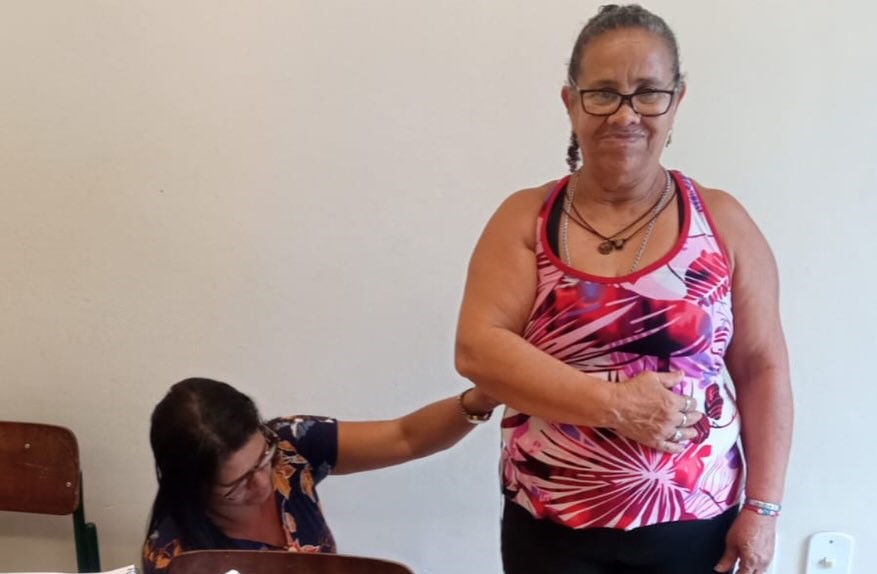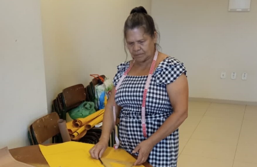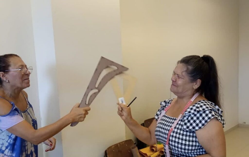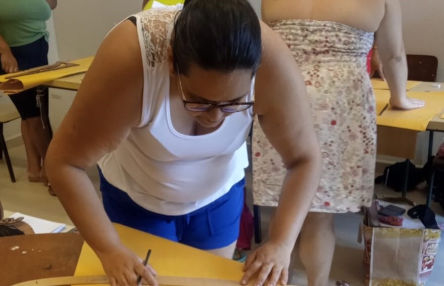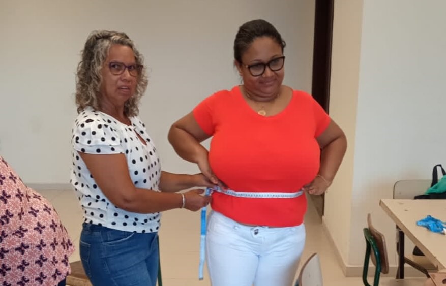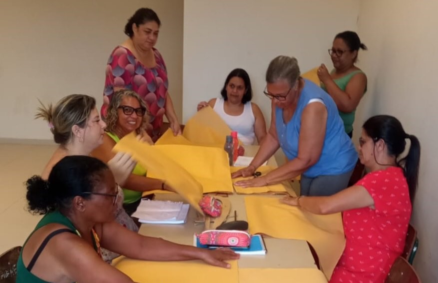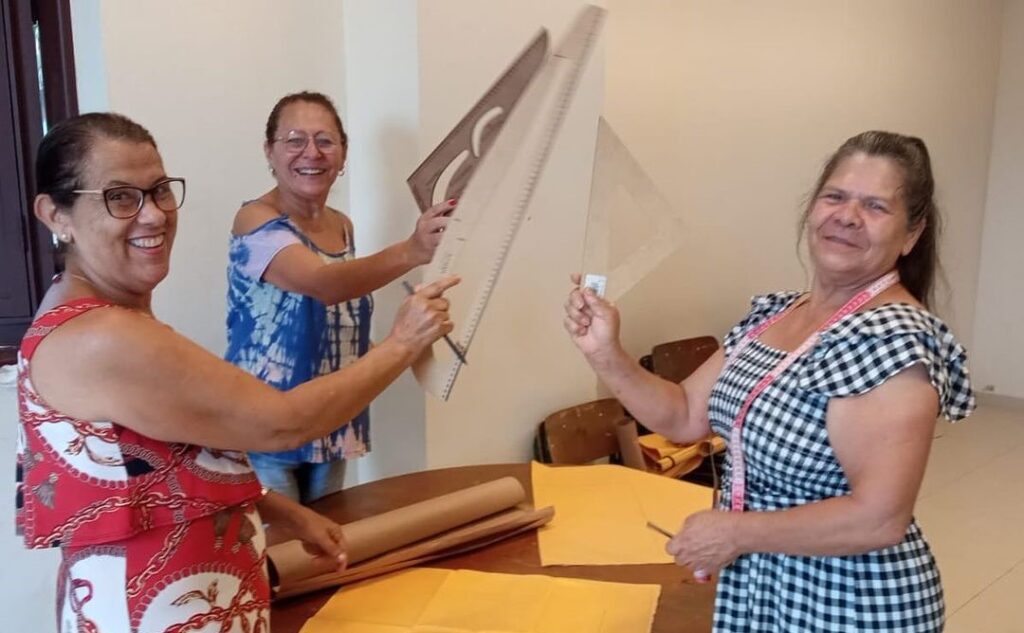 - E as nossas meninas continuam com o curso de corte e costura. Além de aprender muito, eles gostam de cada encontro.
