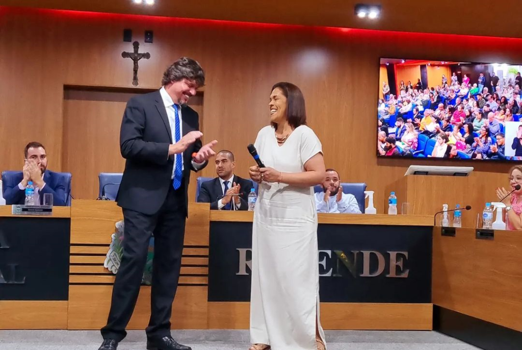 • Dia de agraciar com os mais nobres títulos essas pessoas essenciais em nosso distrito. DALVO PEREIRA, como Profissional Emérito e GRACIELE LIMA como Professor Emérito. Costumo dizer que agraciar vai muito além da homenagem, para mim, significa a valorização e reconhecimento e, poder agraciar essas pessoas como forma de Gratidão é imensurável.