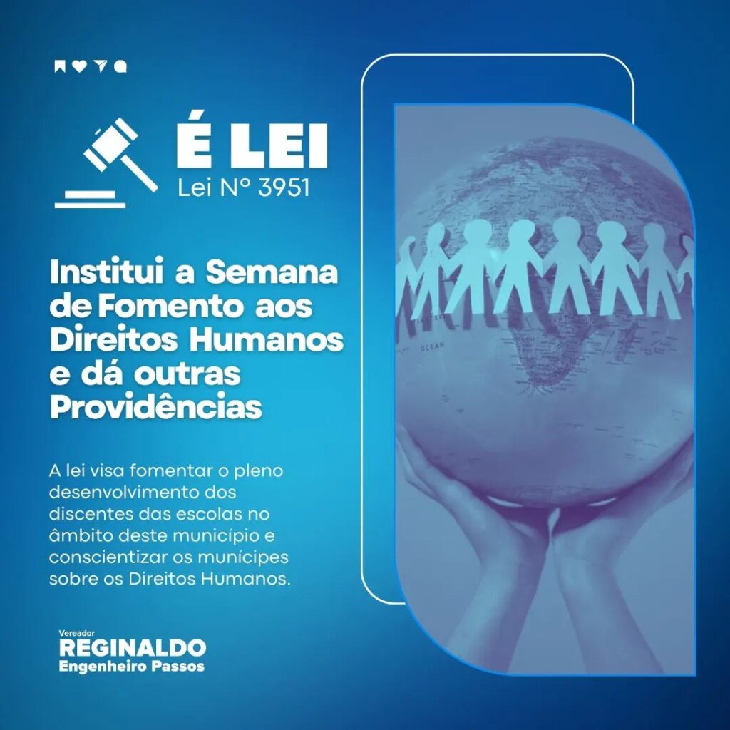 • Agora é lei! No calendário oficial do município está instituída, na última semana de novembro, a Semana de Fomento aos Direitos Humanos.