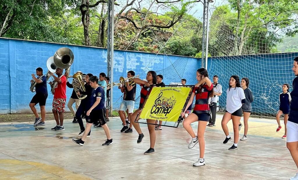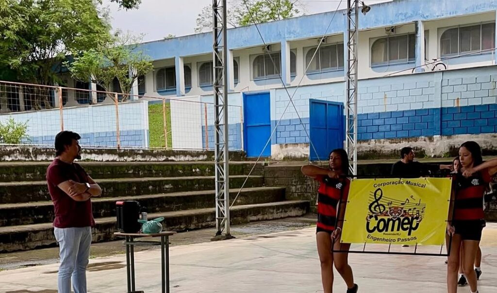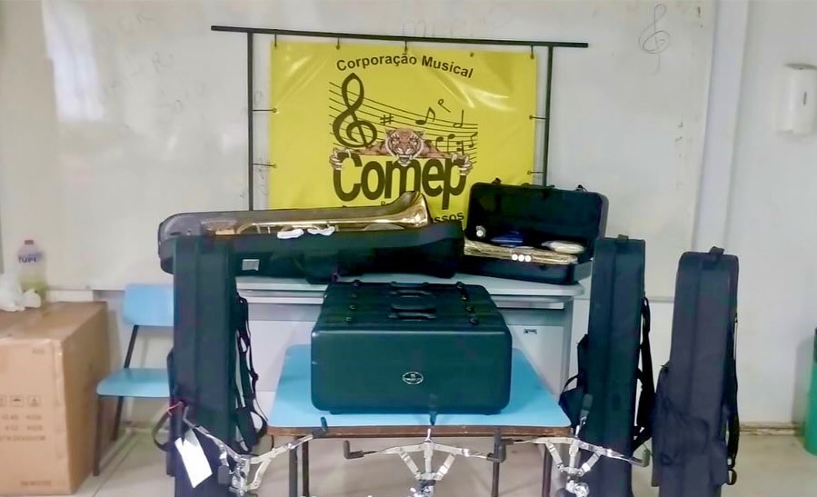 - Foram entregues hoje, os novos instrumentos adquiridos para a COMEEP. Agora, a Corporação Musical Engenheiro Passos possui mais 4 trombones, 5 trompetes e 6 estantes para a percussão.