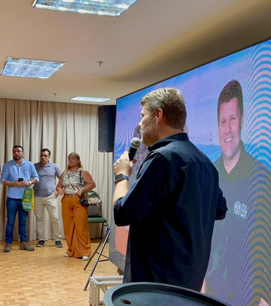 - Estive presente hoje, juntamente com representantes de várias instituições, secretários, prefeitos, vereadores e com o secretário de estado de turismo e amigo, Gustavo Tutuca, na cerimônia de lançamento oficial dos eventos turísticos em nosso município.