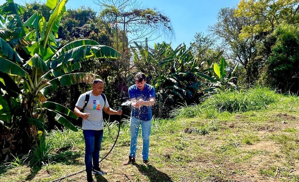 Já preparamos a terra, nossas composteiras já estão prontas, água para regarmos e agora seguimos com os trabalhos.