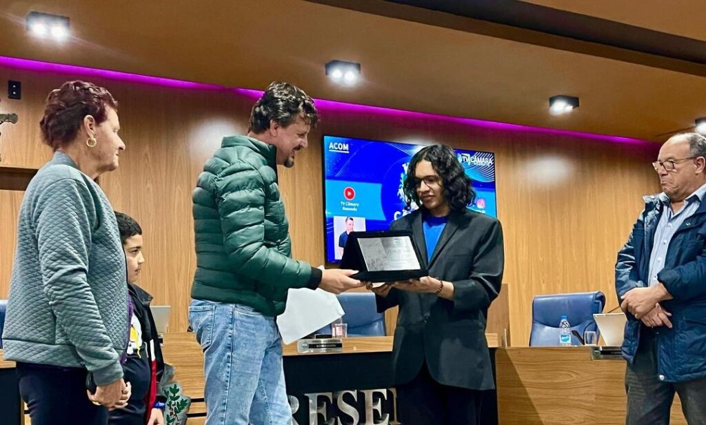 De Engenheiro Passos para o mundo, Jonathan é medalhista da Olimpíada Brasileira de Matemática das Escolas Públicas e pude entregar em suas mãos uma Moção de Louvor por todo seu empenho e por suas conquistas.