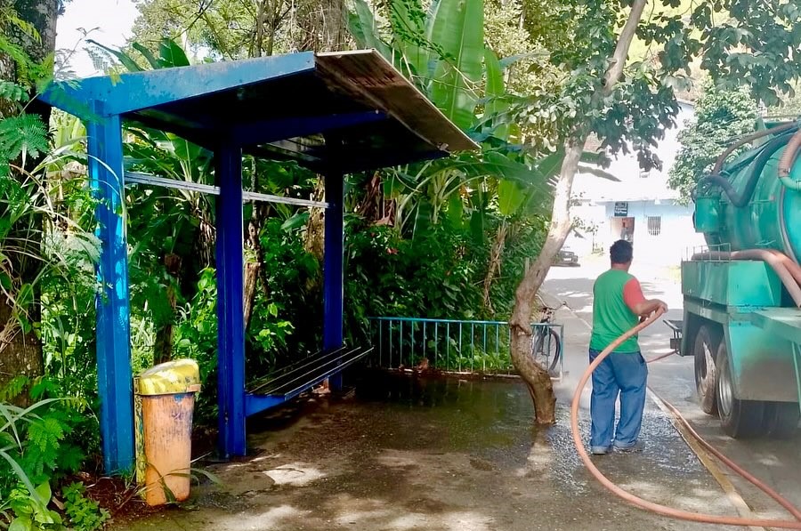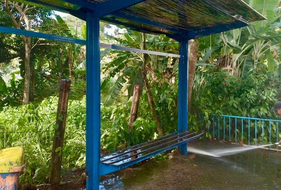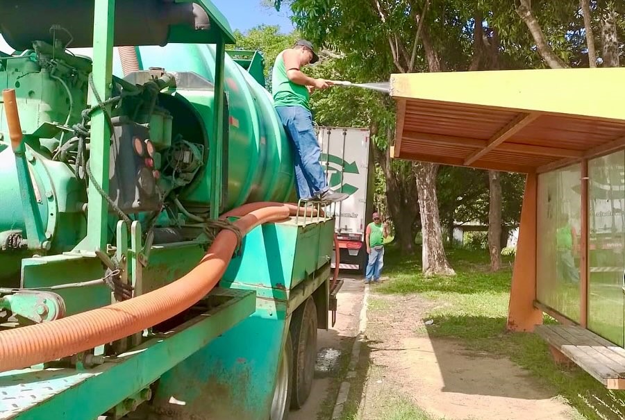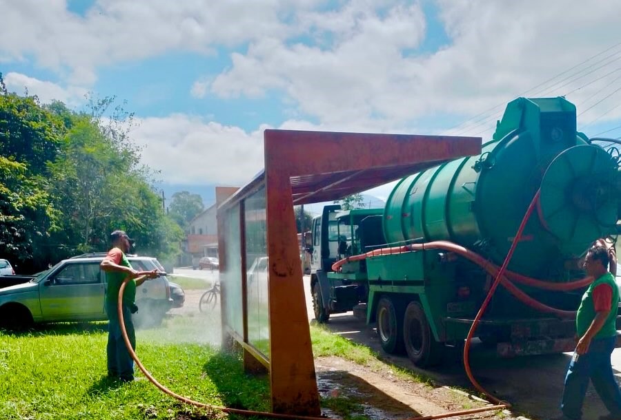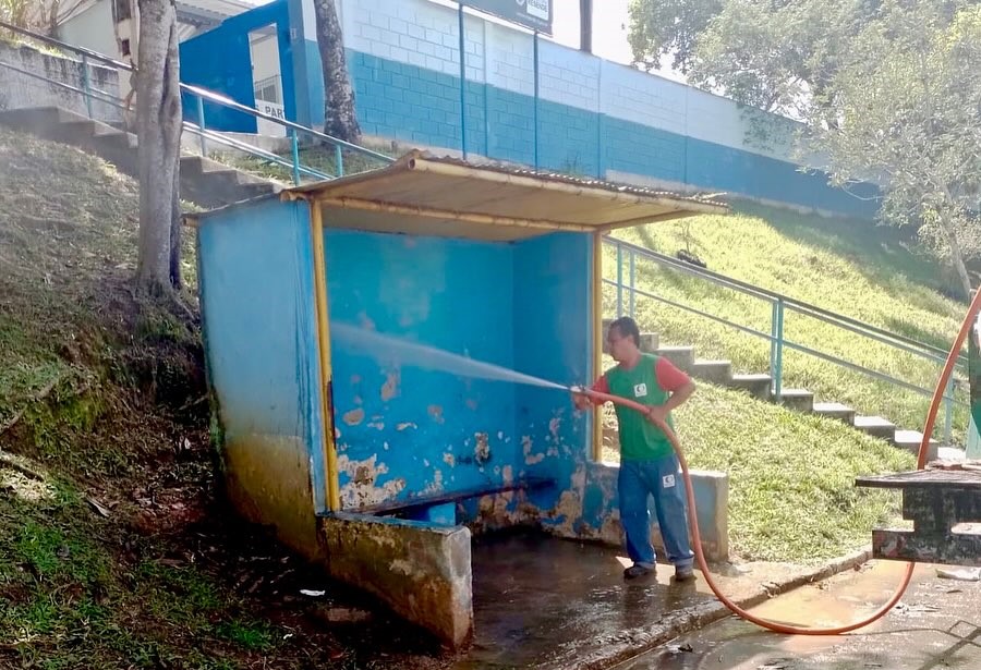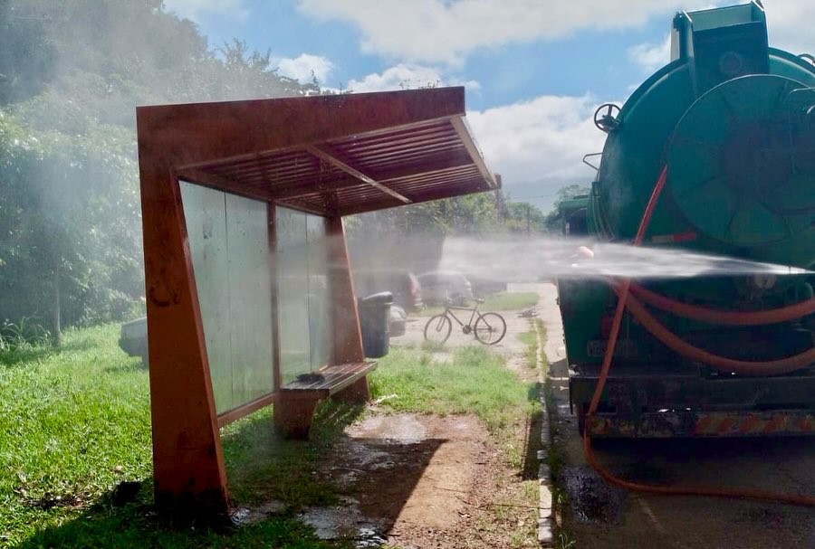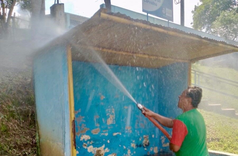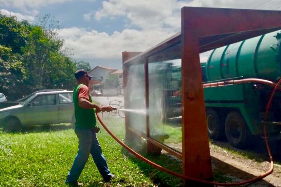 • Lavagem dos pontos de ônibus do distrito de Engenheiro Passos.