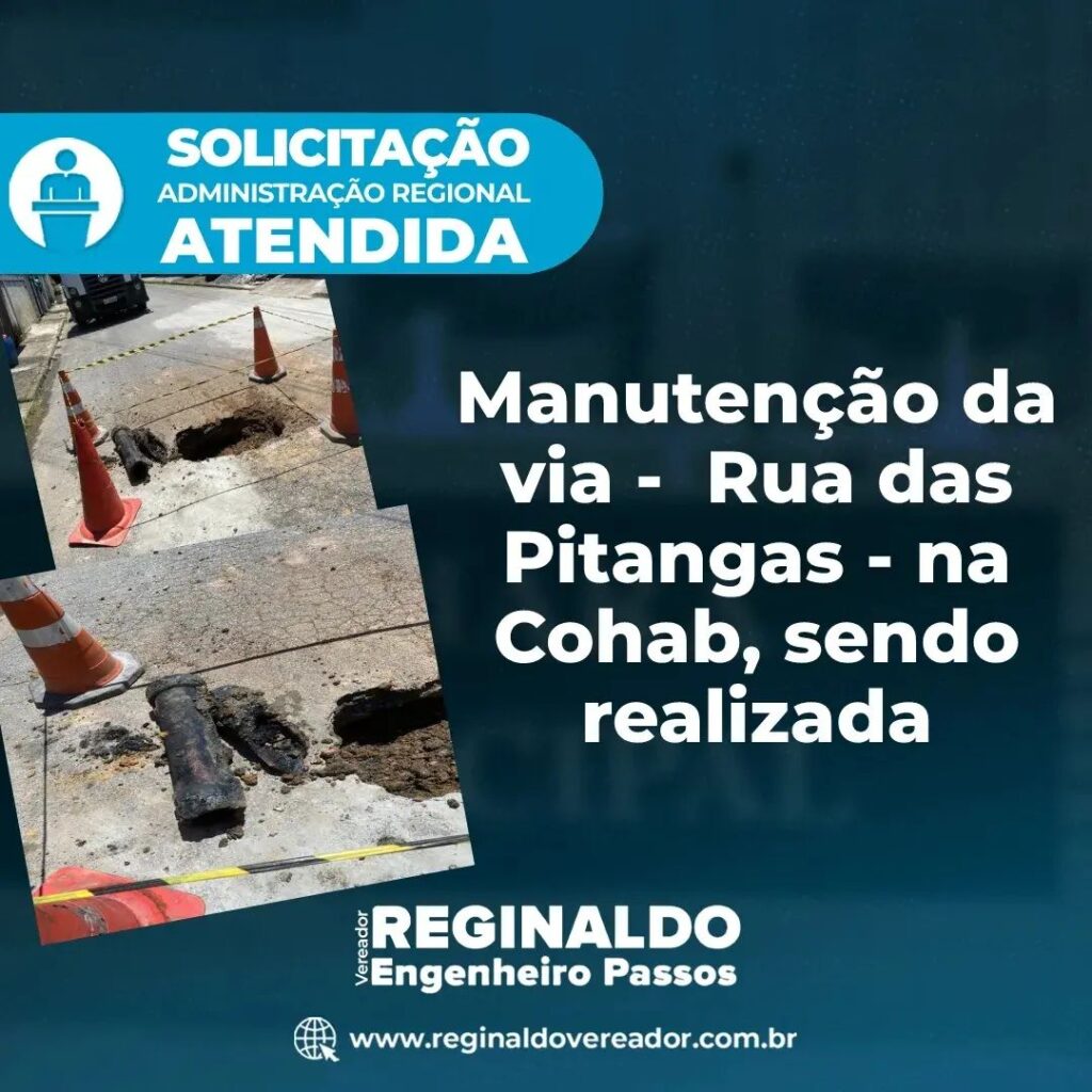 • Foi realizada a manutenção de um buraco na Rua das Pitangas, na Cohab em Engenheiro Passos. Estamos juntos, sempre pensando em trabalhar pelo bem da coletividade. Aproveito para agradecer todo trabalho e empenho da Administração Regional de Engenheiro Passos.