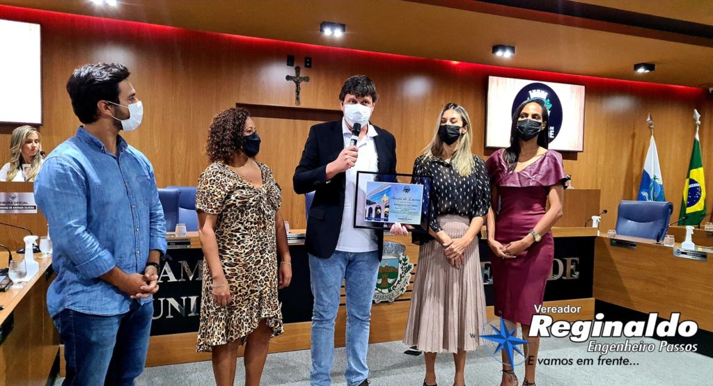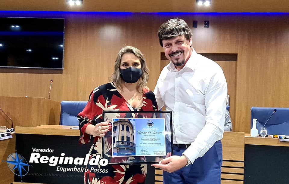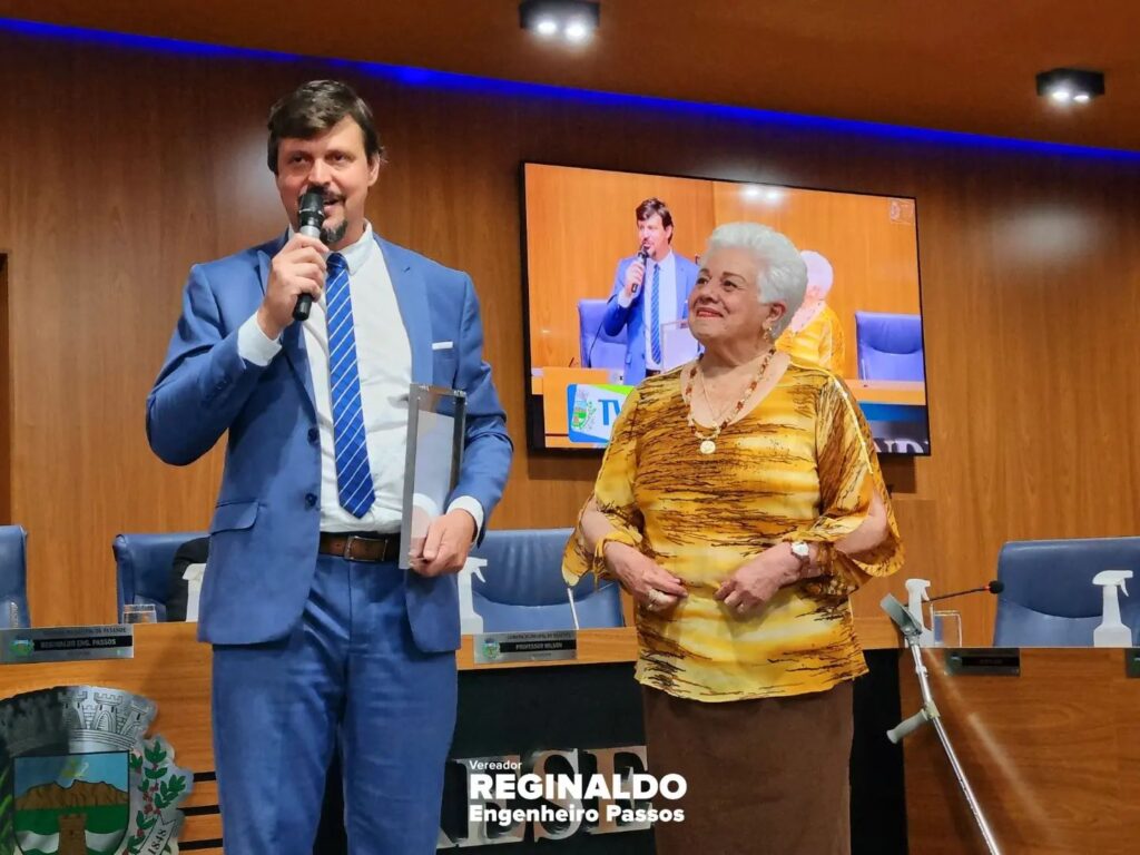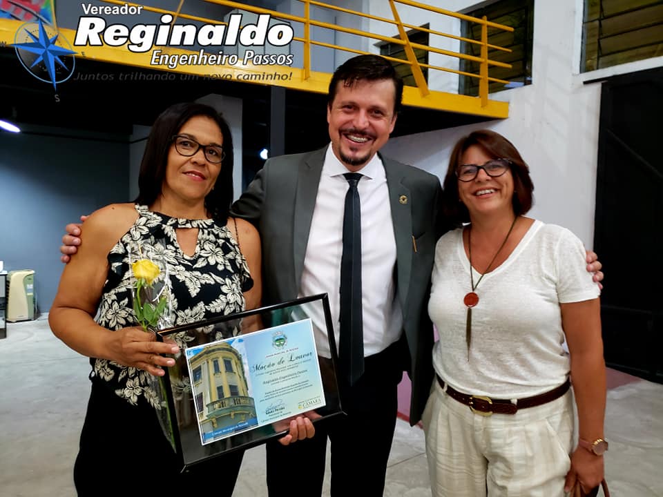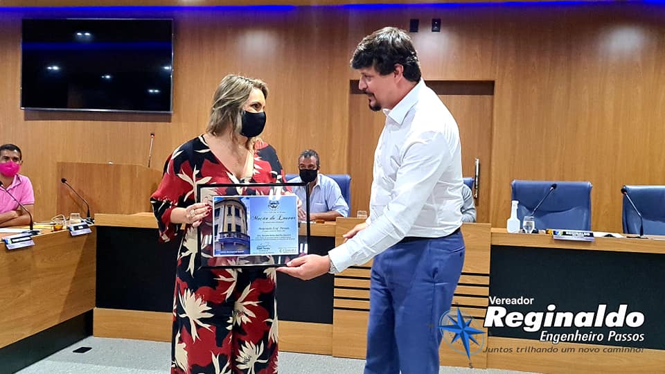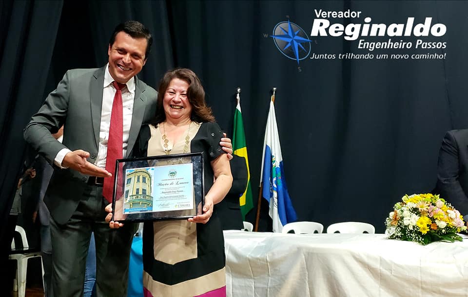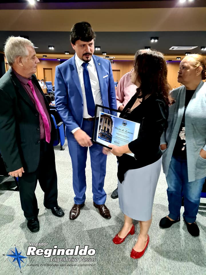 Entreguei com um orgulho imenso uma Moção de Louvor a nossa Eterna “Dona Regina” – Diretora há mais de 30 anos do nosso Colégio Estadual Engenheiro Passos – exerceu com LOUVOR e por gerações a função, tendo como alicerce a educação, disciplina e seriedade.