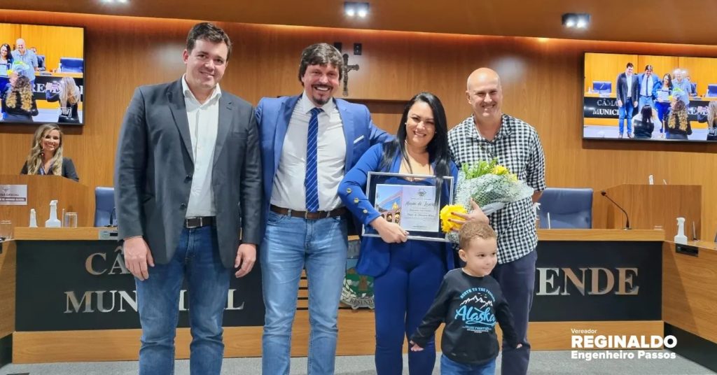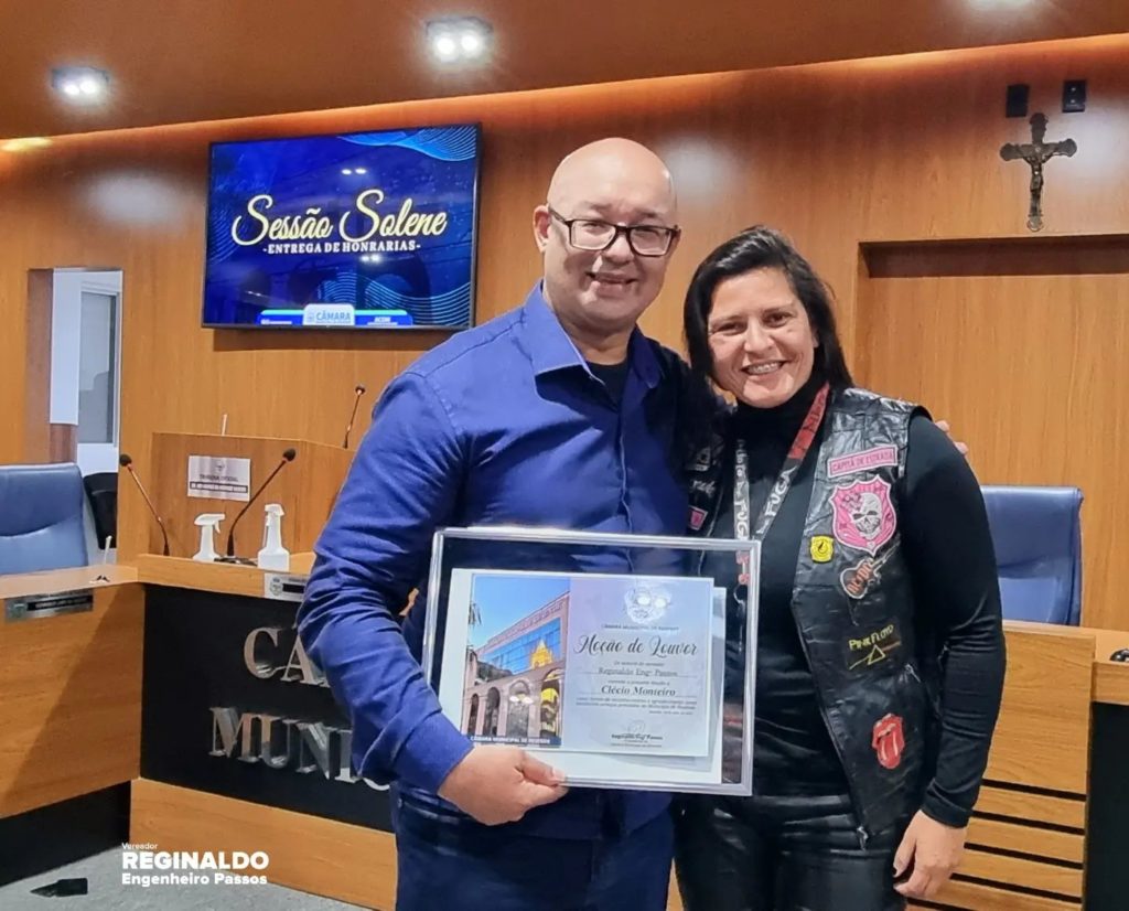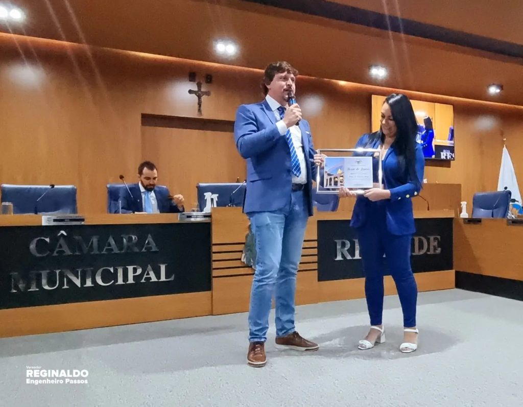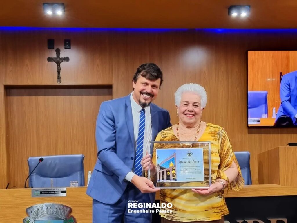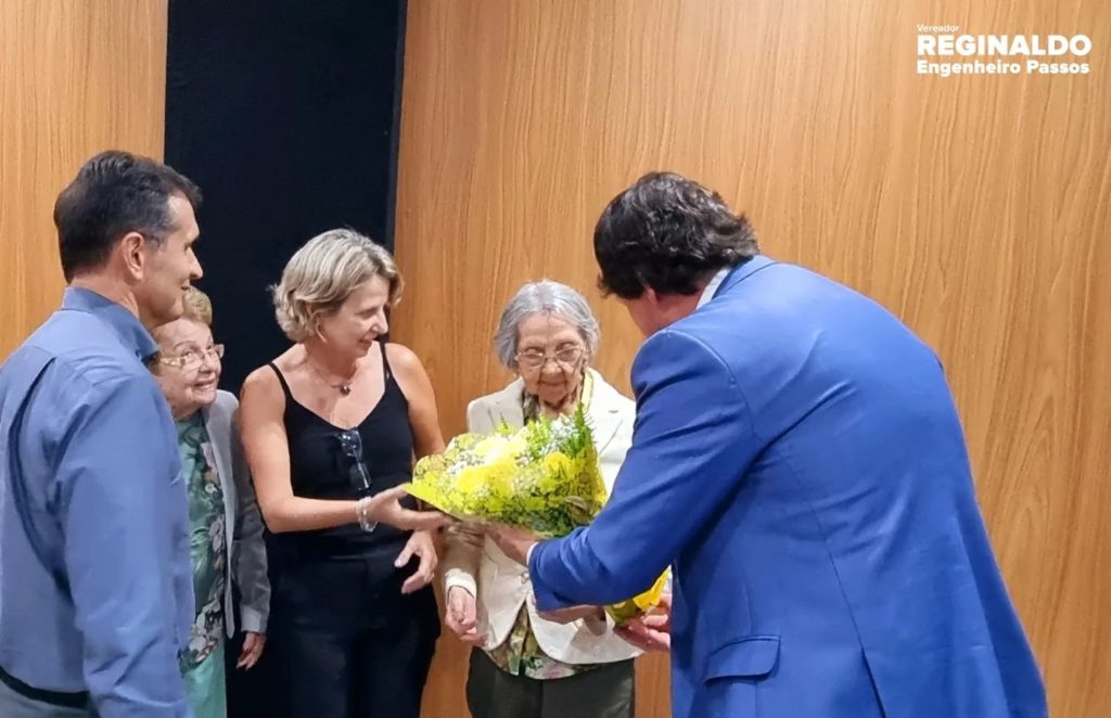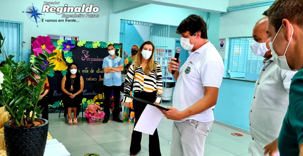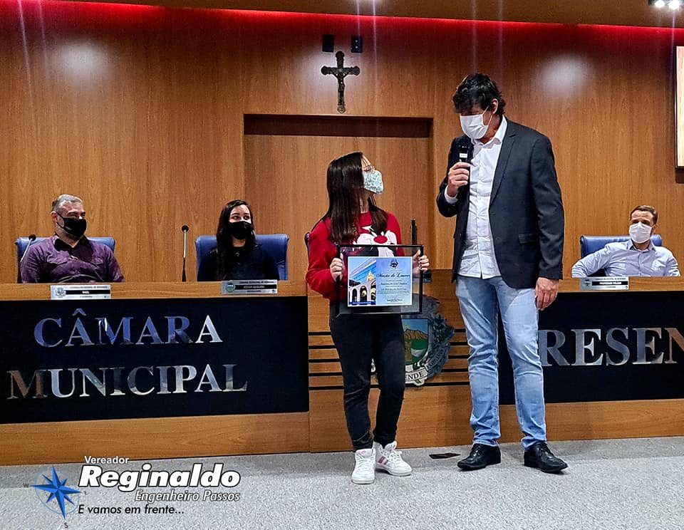 Entreguei com um orgulho imenso uma Moção de Louvor a nossa Eterna “Dona Regina” – Diretora há mais de 30 anos do nosso Colégio Estadual Engenheiro Passos – exerceu com LOUVOR e por gerações a função, tendo como alicerce a educação, disciplina e seriedade.