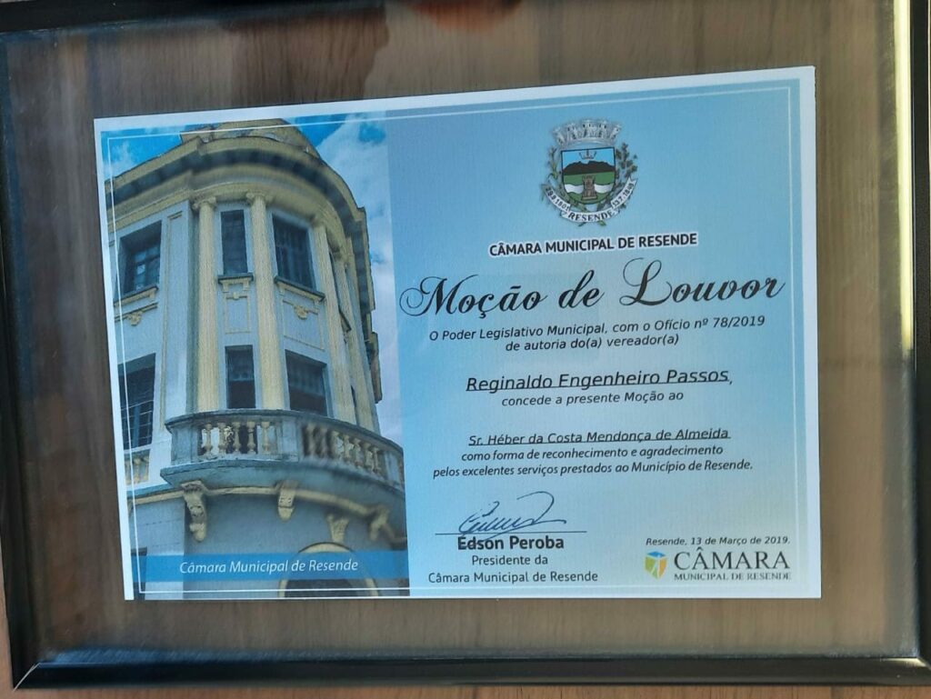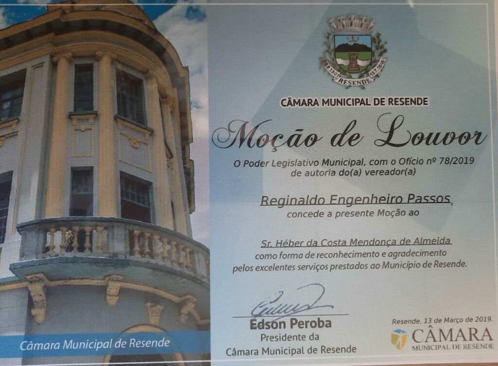 Agradeço e Parabenizo meu homenageado e coloco-me sempre à disposição junto a Casa Legislativa para o bom desempenho dos trabalhos prestados à população resendense.