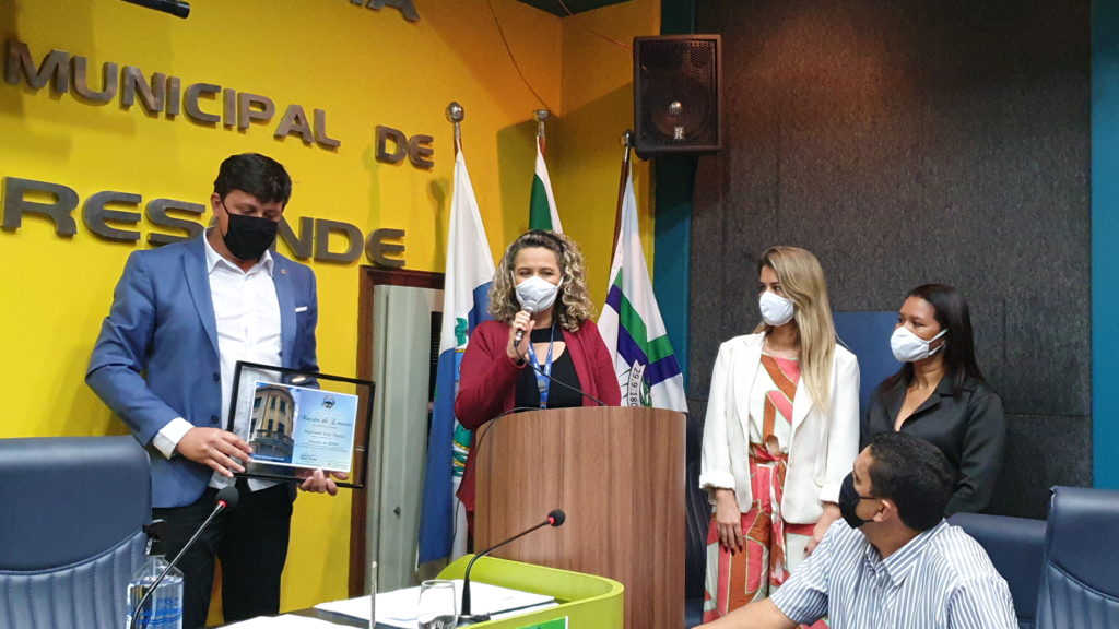 Pude, com muita alegria, agraciar a Thais, colaboradora da nossa Santa Casa de Misericórdia de Resende, que com toda sua dedicação, empatia e carisma, atende nossos pacientes com amor, paciência e zelo. Essa homenagem, partiu de uma solicitação dos munícipes que sempre elogiam seu trabalho. Em tempos, sabemos que lidar com pessoas em situação de saúde fragilizada, requer muito de nós, e eu não poderia de deixar de valorizar o trabalho da Thais.