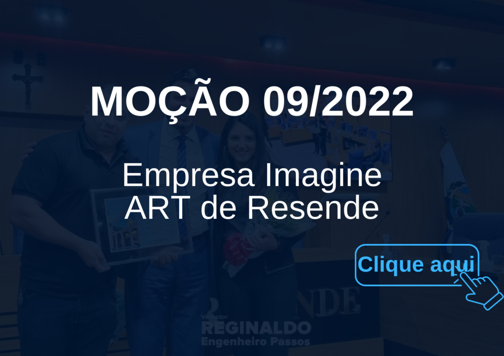 A gráfica Imagine Art foi a minha homenageada, gráfica que atua em Resende e já oferta oportunidades de emprego. Os proprietários são dois jovens que me acompanham e estão junto comigo desde o meu primeiro mandato, tornando inclusive, grandes amigos. Sempre comprometidos com o próximo e não medem esforços quando o assunto é ajudar!