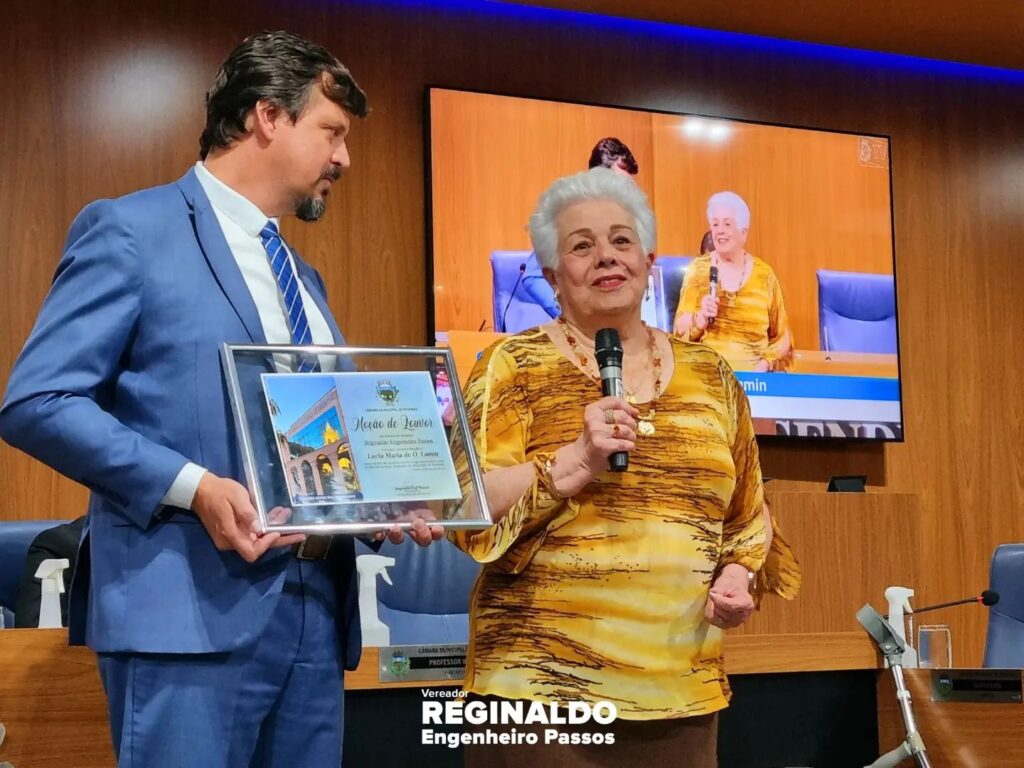 Em Sessão Solene, tive o privilégio de agraciar, ofertando uma Moção de Louvor para a Dona Lucinha.