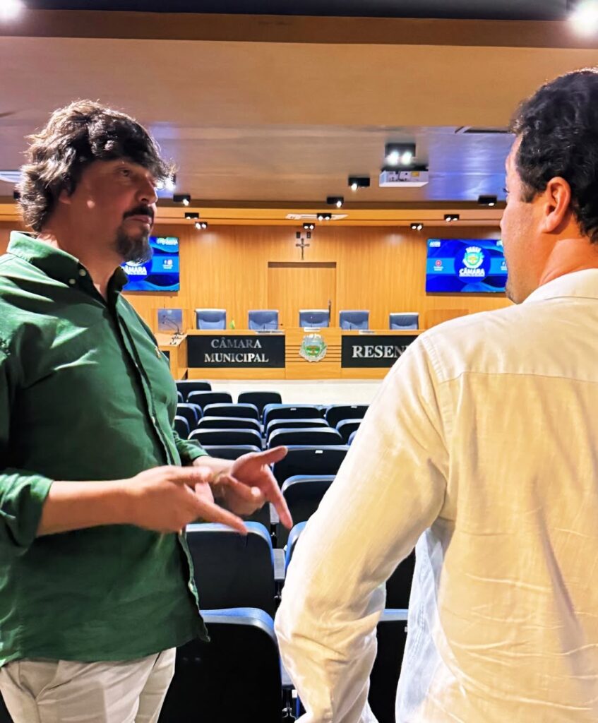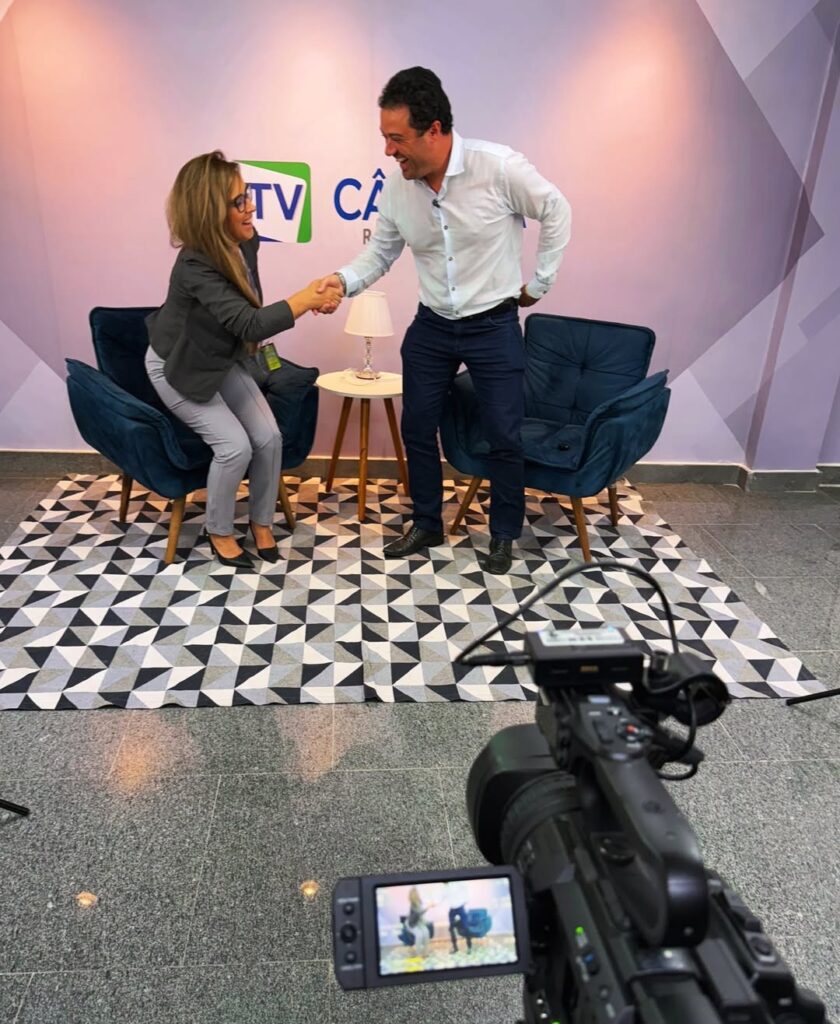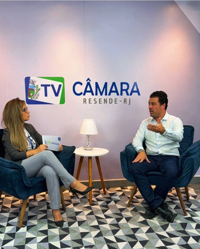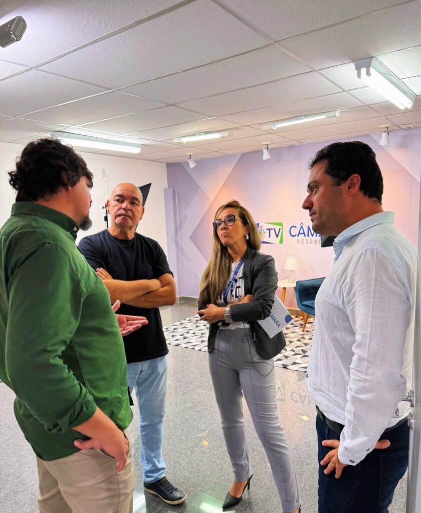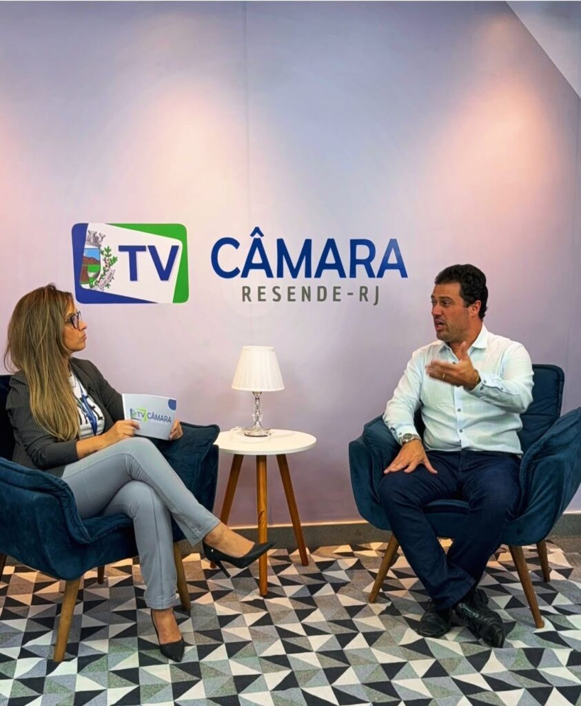 Ari conheceu as instalações da Câmara Resende e teve a oportunidade de dar entrevista para a TV Câmara.