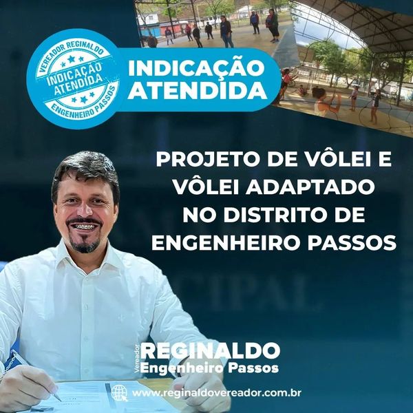 • Engenheiro Passos agora conta com mais uma modalidade esportiva – o vôlei! Além das crianças, o Projeto também atende a 3ª Idade, com um vôlei adaptado para os limites e necessidades da melhor idade ativa. As aulas de vôlei são por conta do Professor Fabinho e Professora Camila.