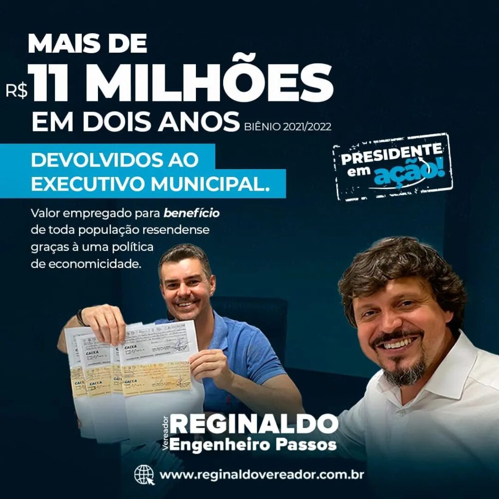 Nesses dois anos em que estive Presidente da Casa Legislativa, devolvemos mais de 11 milhões de reais, MAIOR DEVOLUÇÃO DA HISTÓRIA DE RESENDE, isso graças a política de economicidade implantada dentro da Câmara ao longo desse período. Para mim é uma satisfação imensa obter esses valores expressivos, pois sei que a quantia será revertida em investimentos para o povo!