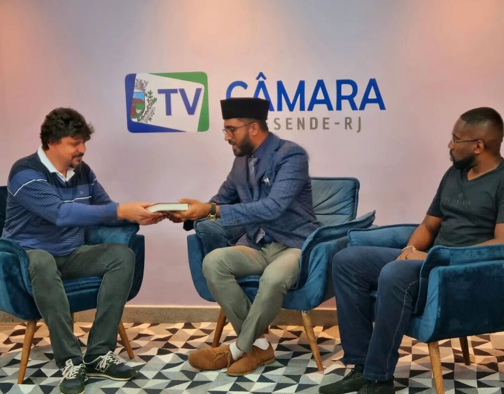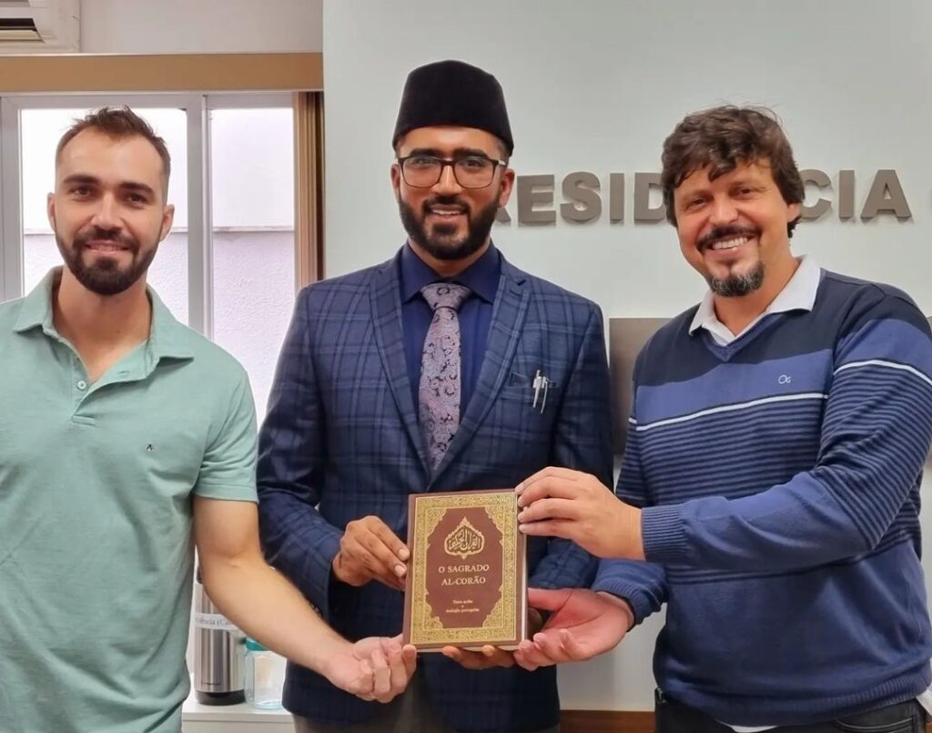 Na oportunidade, realizamos uma gravação pela TV Câmara para o quadro Câmara Convida, que teve a participação do também vereador Matheus Oliveira que faz parte da Comissão da Igualdade Racial e Combate a Intolerância Religiosa. Também esteve conosco o Vice-Presidente da Câmara, o vereador Renan Marassi. Além dos conhecimentos sobre a religião, ganhei das mãos do Missionário o Alcorão, livro sagrado do Islã.