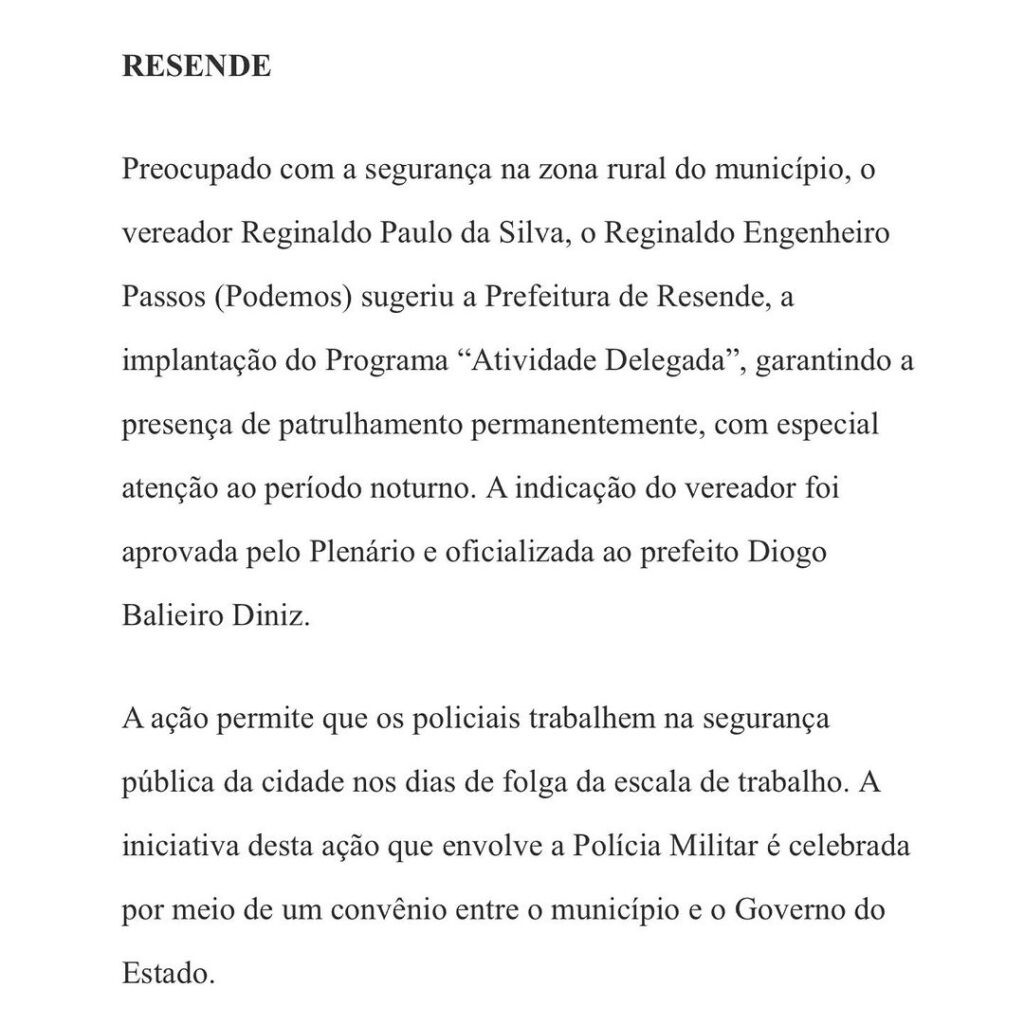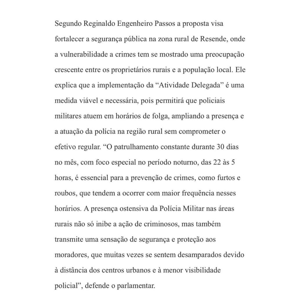 - Pensando na segurança da área rural, solicitei o patrulhamento nas localidades.