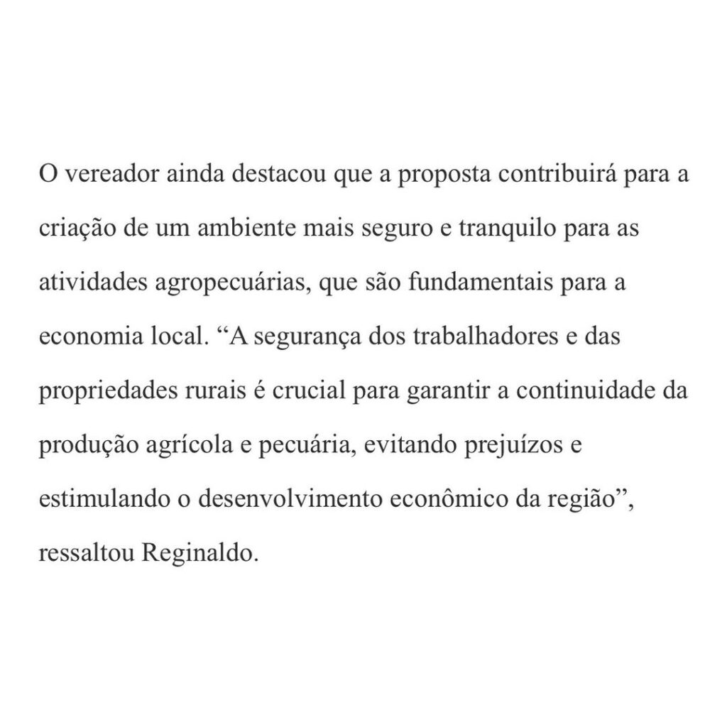 Precisamos de segurança e tranquilidade para as atividades dos produtores rurais, pois a produção agrícola é fundamental para a nossa agricultura.A presença de patrulhamento inibe diretamente qualquer atitude irregular, principalmente no período noturno.