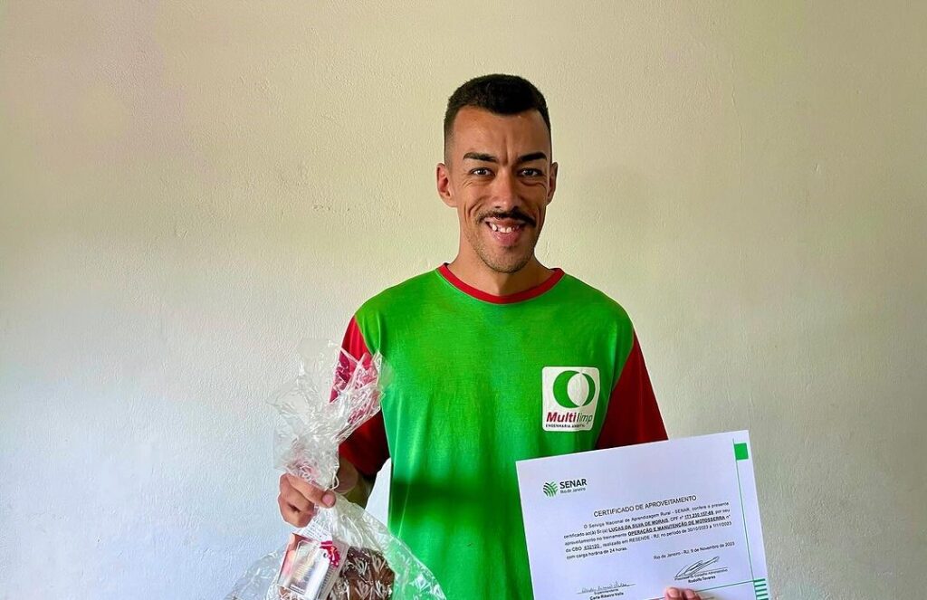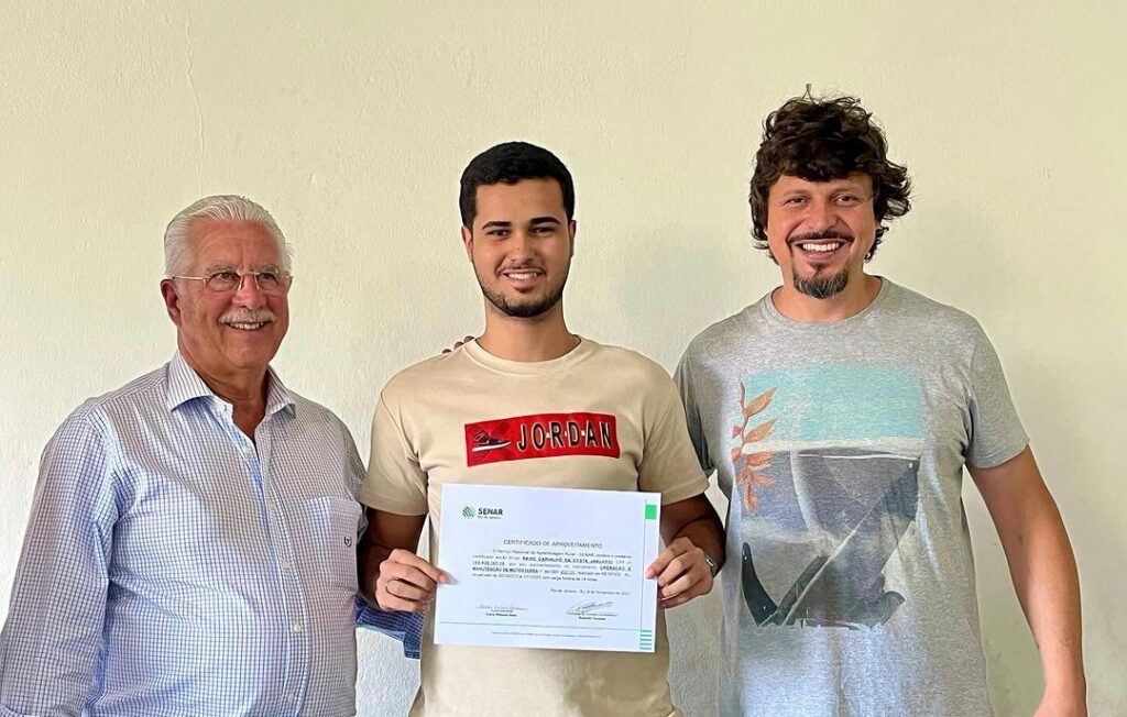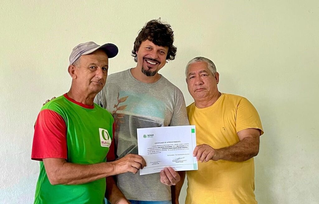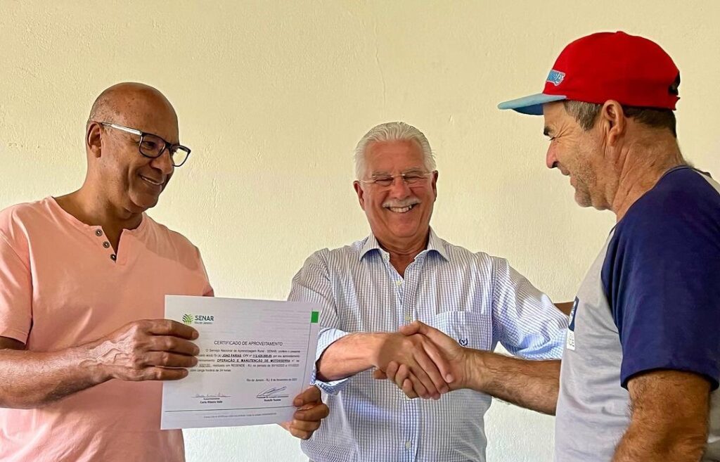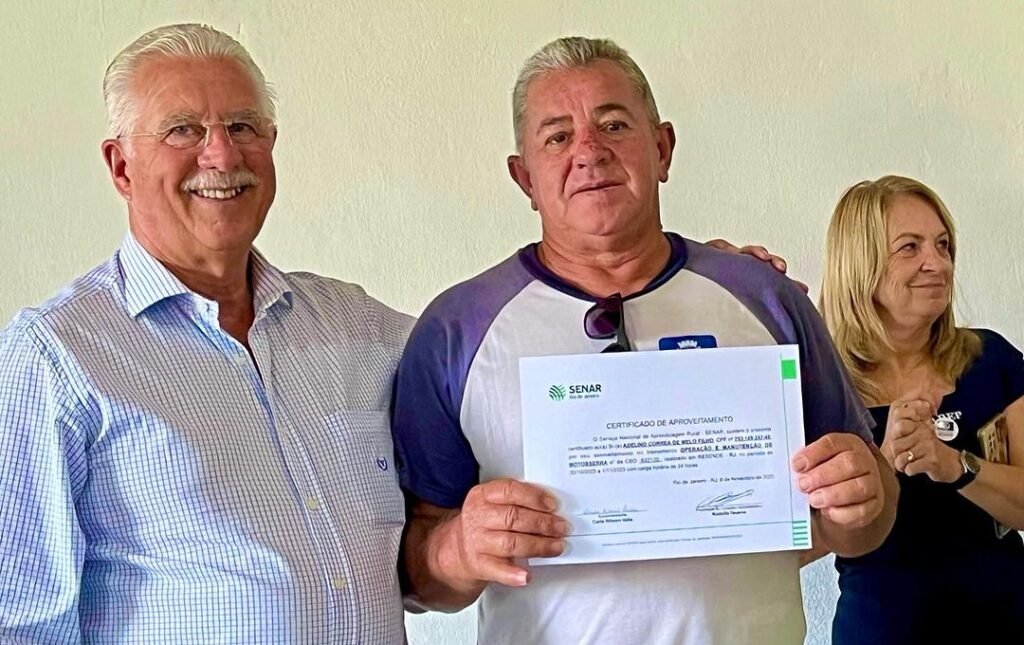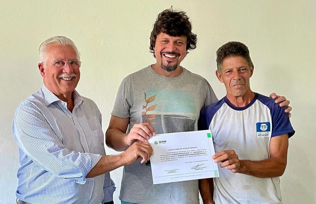 - Realizamos a entrega dos certificados do curso de operador de motoserra para os funcionários da Administração Regional de Engenheiro Passos, ofertados pelo Senar Resende. Recebemos a ilustre presença do presidente do sindicato rural de Resende, Alberto Werneck, um parceiro nosso de longas datas e de sua equipe.