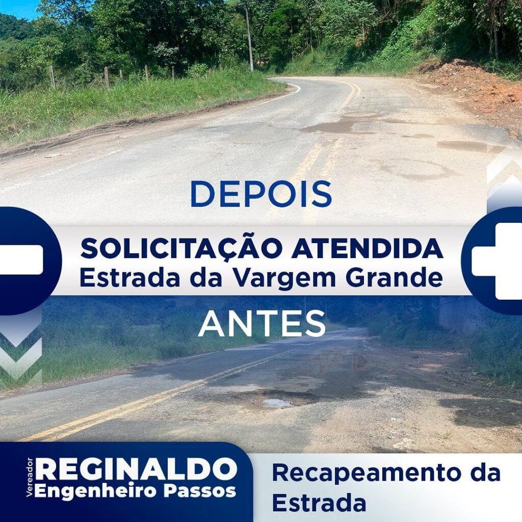 • Atendendo aos pedidos dos munícipes, solicitei o recapeamento de um buraco na estrada de Vargem Grande.