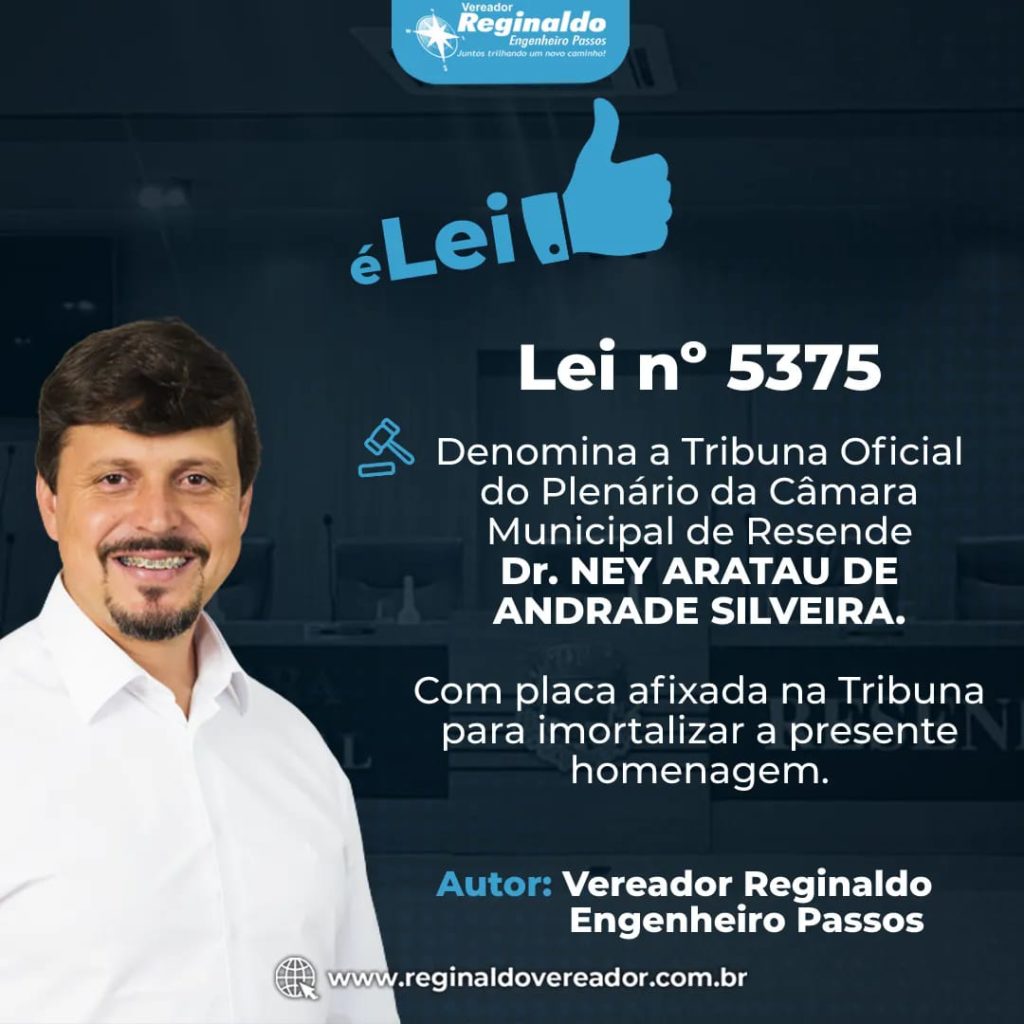 •  A Tribuna Oficial da Câmara de Vereadores de Resende, foi nomeado através de uma lei de minha autoria como: TRIBUNA NEY ARATAU DE ANDRADE SILVEIRA.