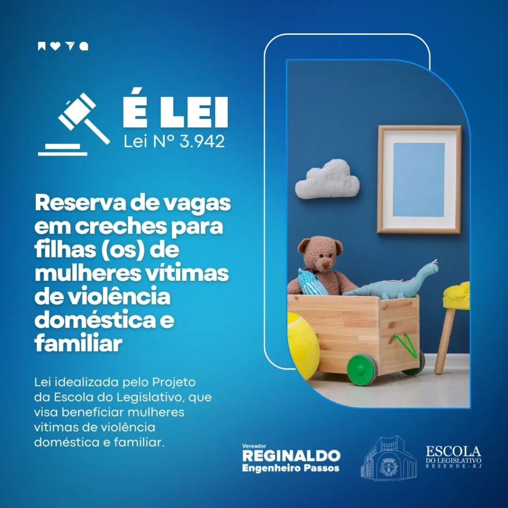 - Foi sancionada a lei que institui no município vagas em creches para filhos de mulheres vítimas de violência doméstica.