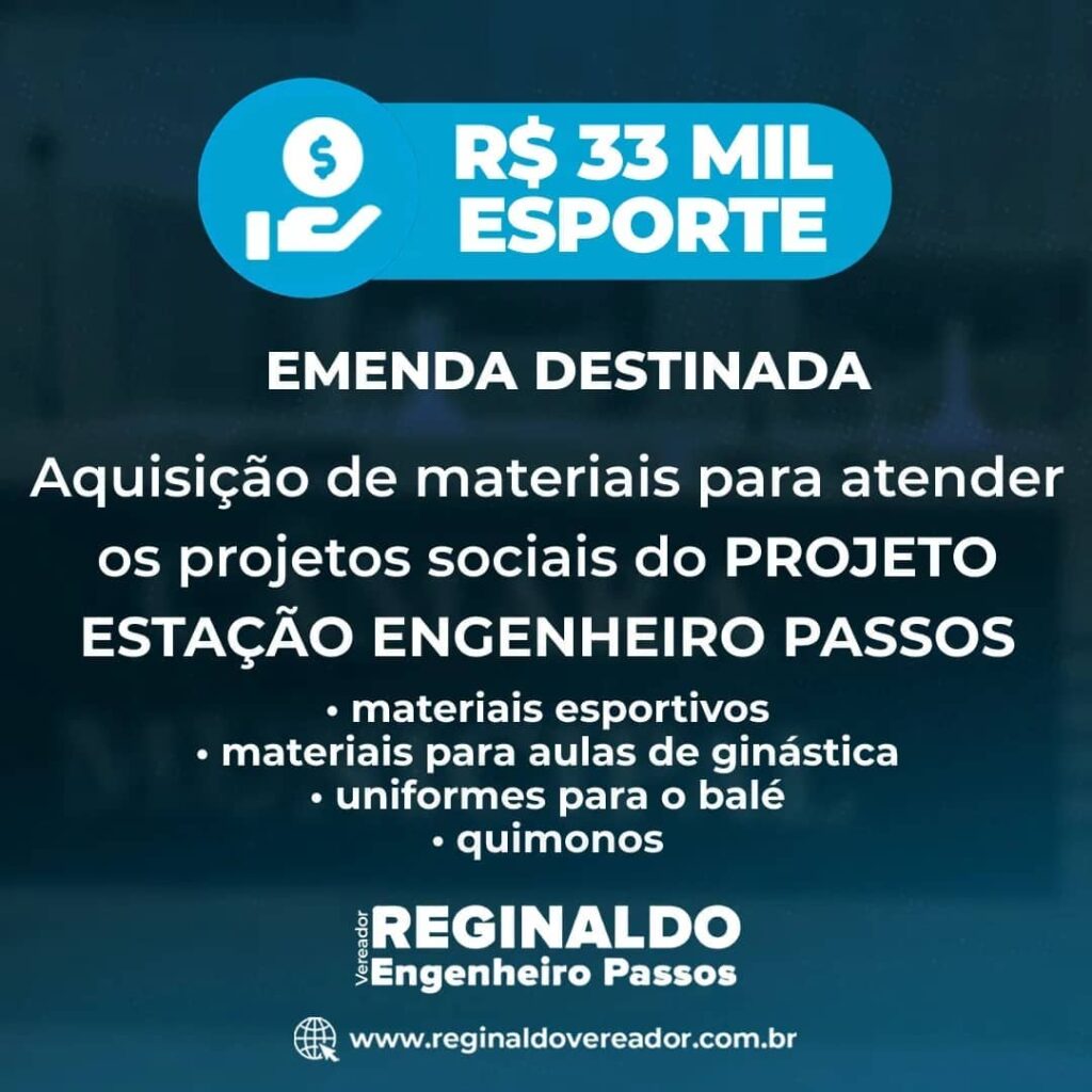 • Destinei, através de emenda impositiva, valores para serem utilizados em benefício da população resendense, em especial, aos moradores de Engenheiro Passos.
