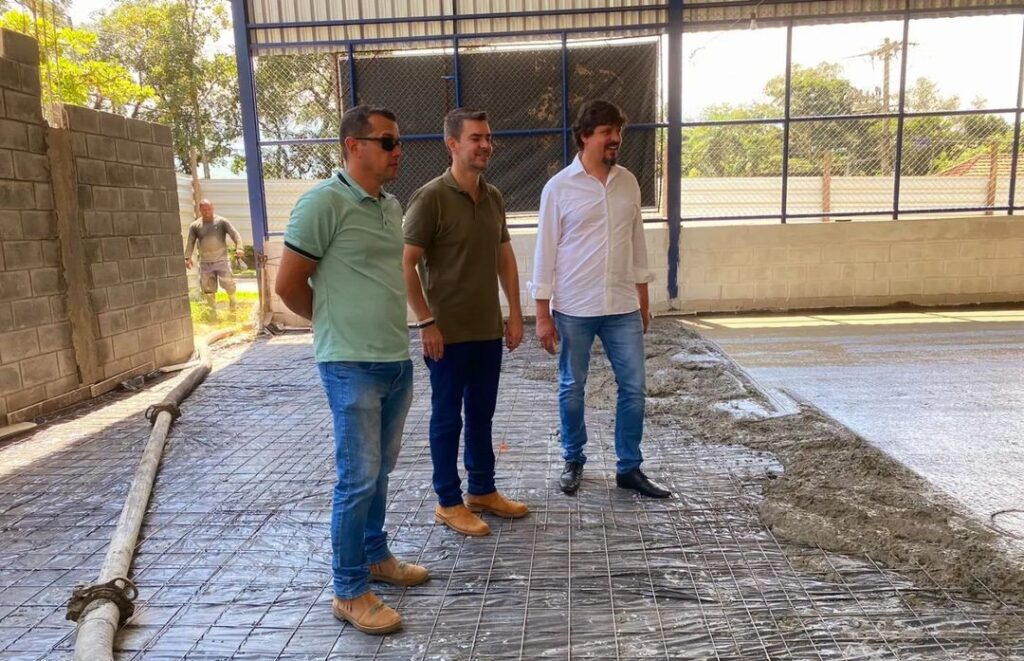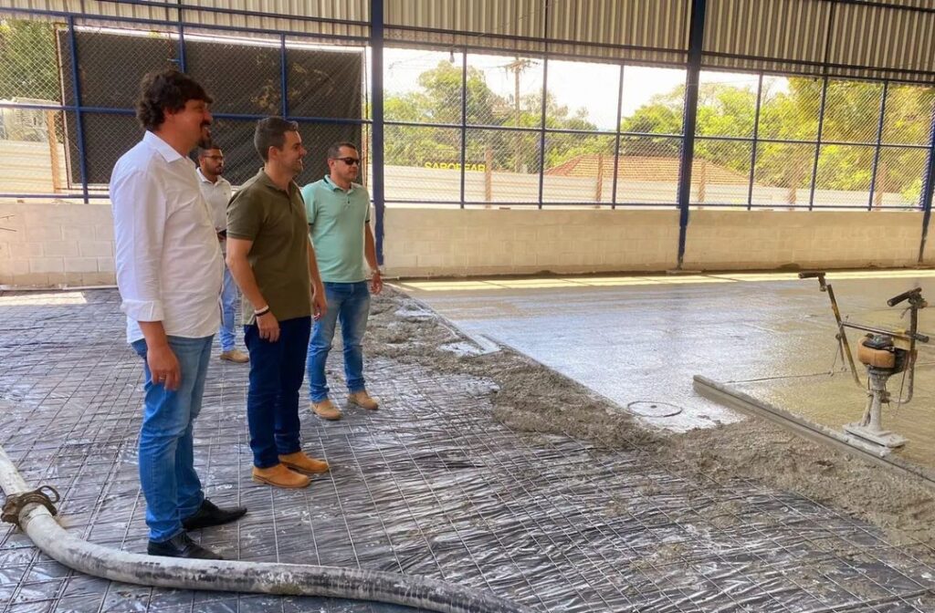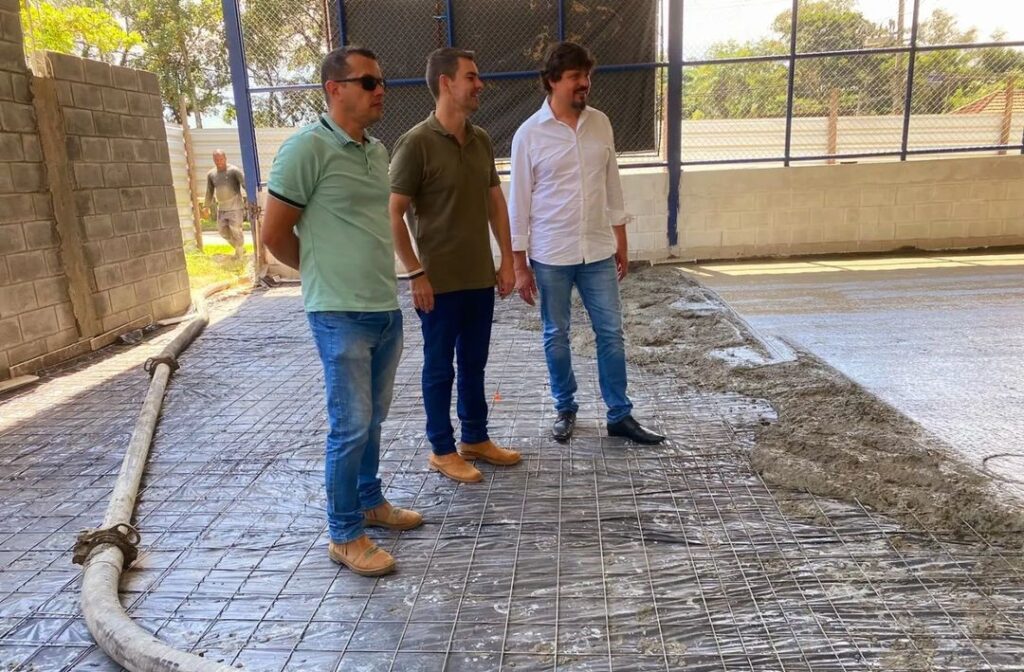 •  Aproveitando a visita do prefeito Diogo e do secretário Thomas em nosso distrito, fomos também visitar a obra da Quadra Poliesportiva do centro que já se encontra na reta final.
