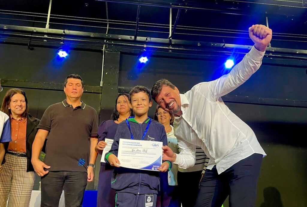 Parabéns, Yuri. Que seja o primeiro prêmio de muitos que você conquistará. Continue assim, brilhando cada vez mais forte! Obrigado por me permitir participar desse momento tão importante na sua vida! Parabéns professora, pais, avó e direção da EMAC. Juntos, por um futuro melhor, sempre!